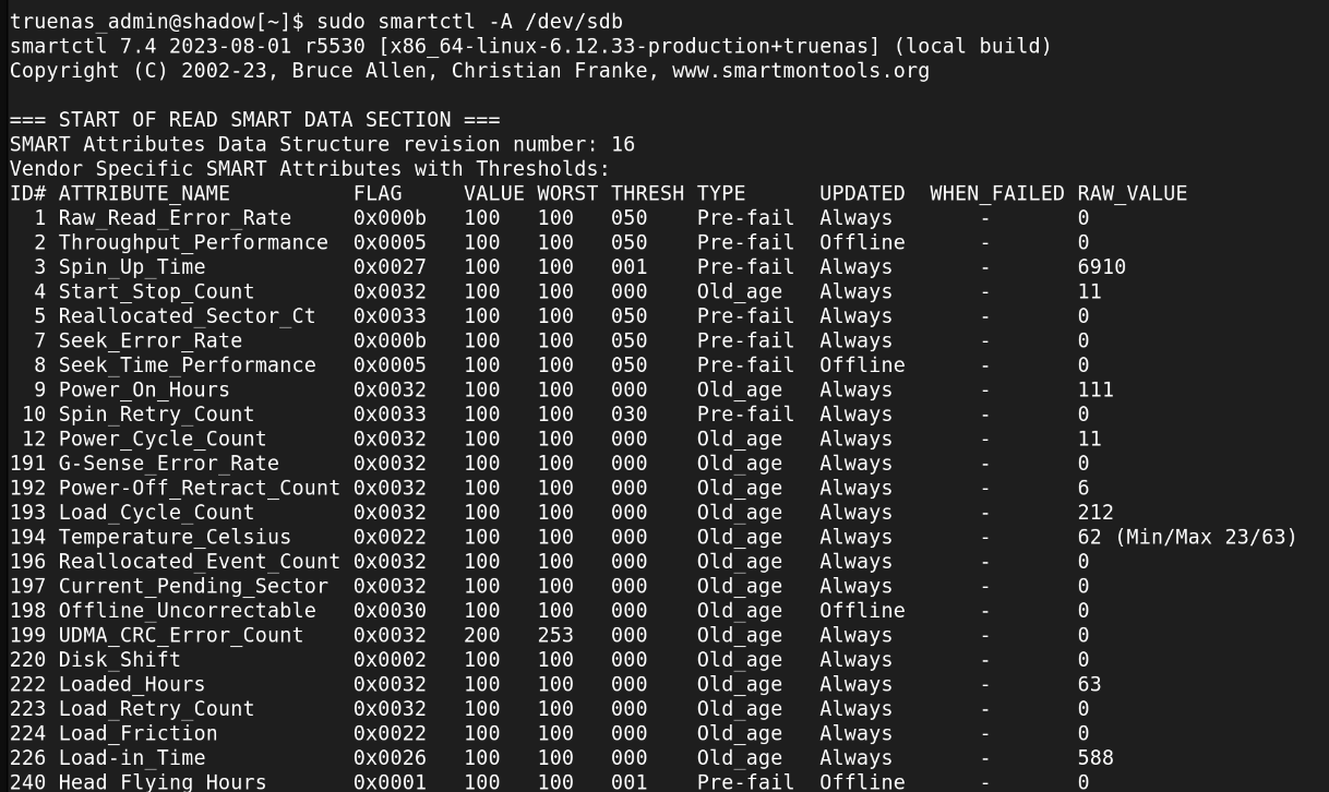 smartctl -A /dev/sdX (Notez le A majuscule)