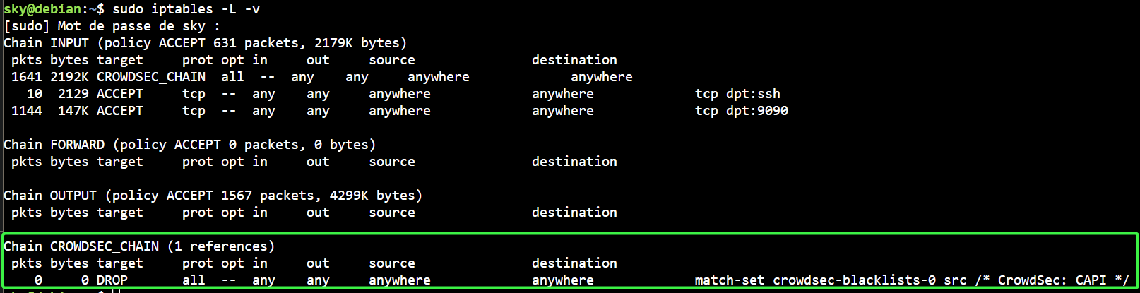 sudo apt install -y crowdsec crowdsec-firewall-bouncer-iptables