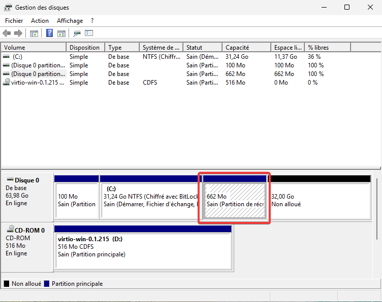 Si vous avez la partition Partition de récupération qui vous pose problème, vous pouvez la supprimer ou passer à l'étape 2. Étendre une partition existante