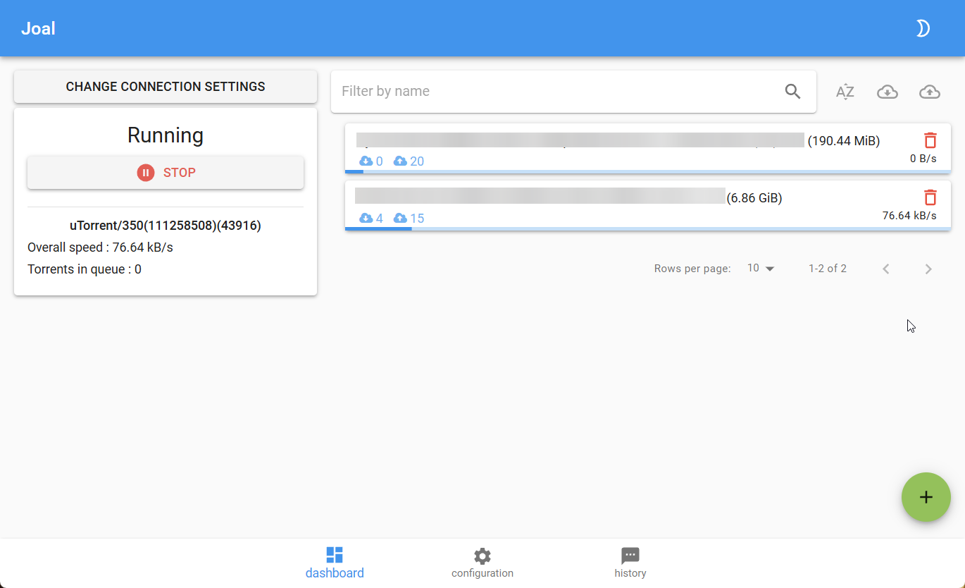 .torrentdans le tableau de bord Joal. - Cliquer sur le bouton "+" et sélectionner un fichier.